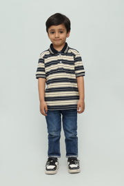 Kids Beige with Black Stripes Polo Shirt