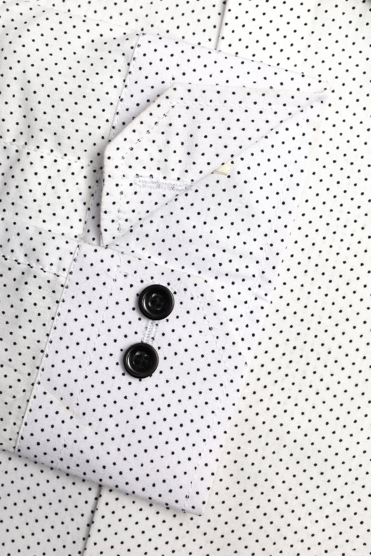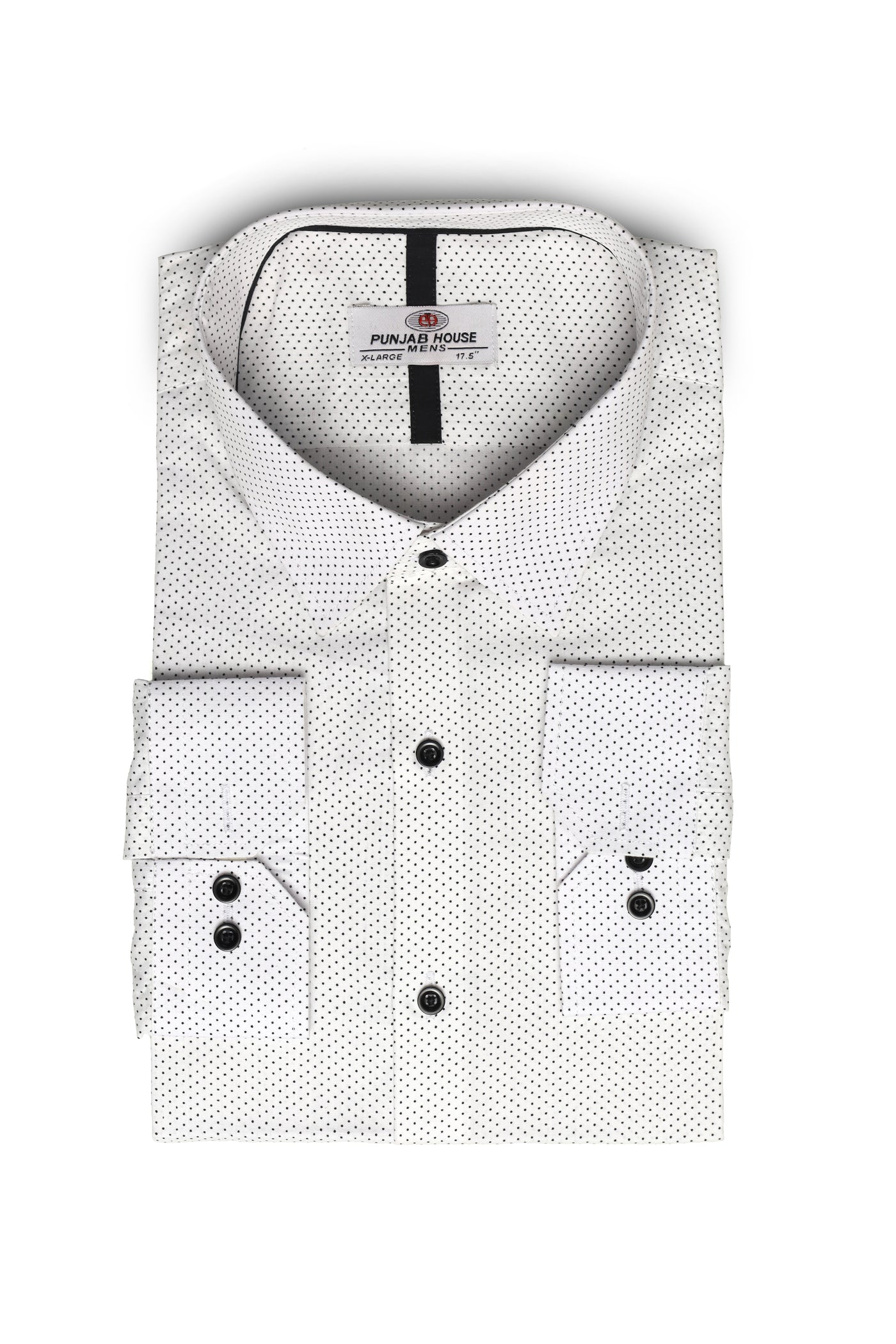Elevate your style with this Men's White Micro Polka Dot Designer Shirt. Combining classic tailoring with modern detailing, it’s perfect for business or smart-casual occasions. The subtle pattern and contrast trims add a refined, contemporary touch.