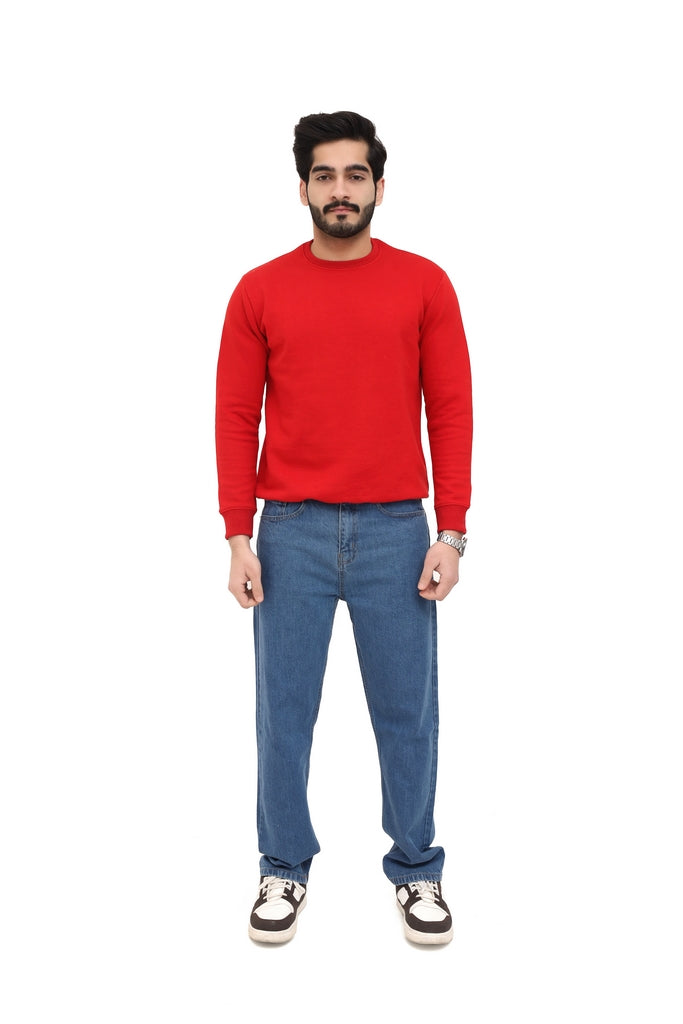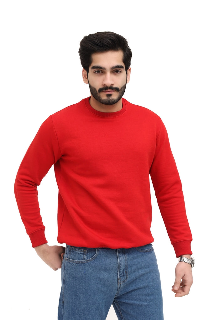 Stay warm and stylish with this Men’s Red Fleece Sweatshirt. Made from soft fleece fabric, it provides excellent insulation and a cozy feel for daily winter wear. The bold red color adds a vibrant and energetic touch, making it perfect to pair with jeans, joggers, or casual trousers for a standout casual look.