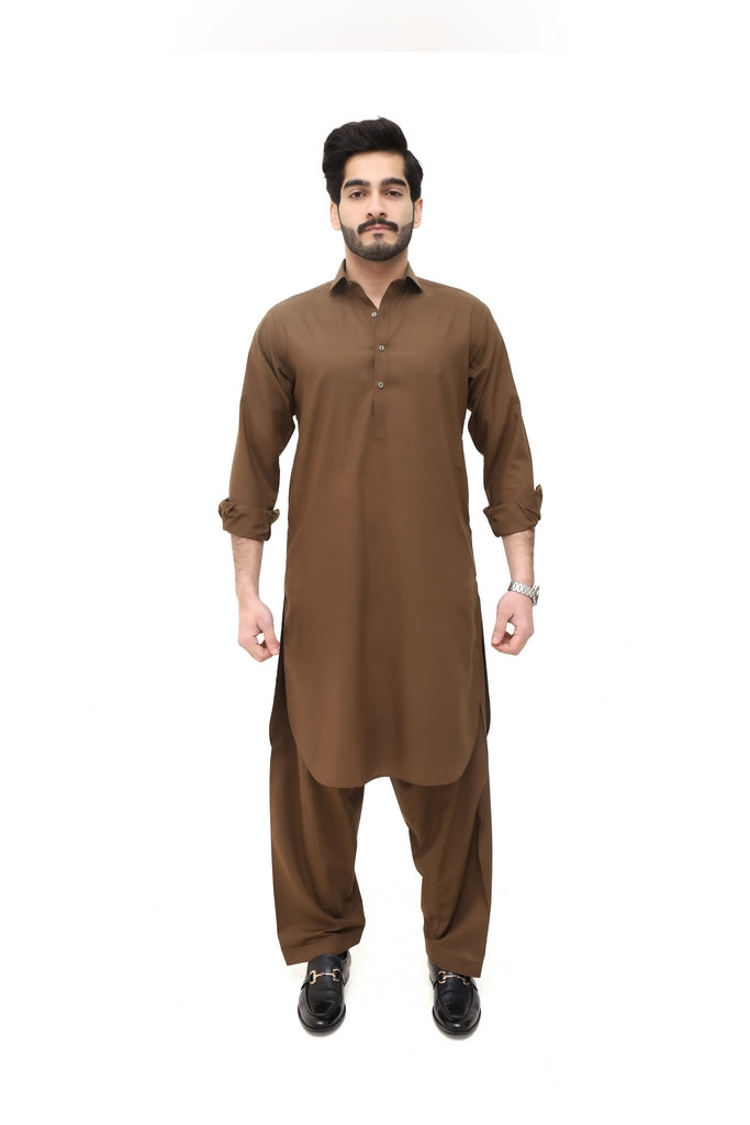 The Dark Brown Wash & Wear Shalwar Kameez offers a classic and dignified look with everyday comfort. Crafted from premium wash & wear fabric, it provides a smooth texture, breathable feel, and a well-balanced drape that stays neat from morning to evening. The rich dark brown tone adds warmth and depth, making it a versatile choice for work, gatherings, and formal wear.