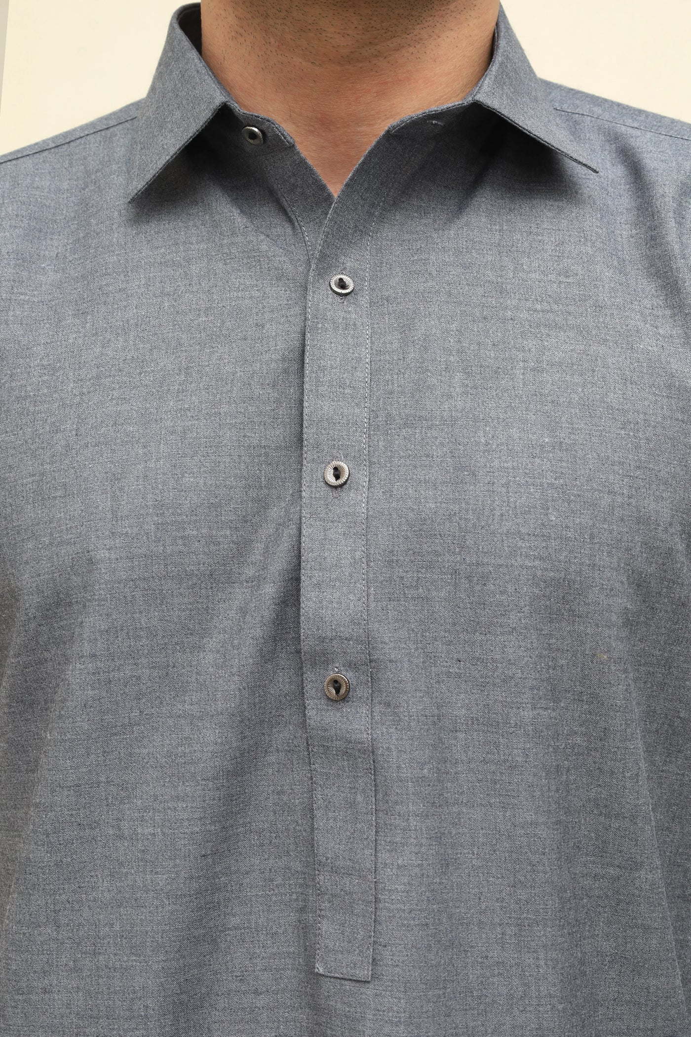 Dark Grey Wash & Wear Shalwar Kameez - S