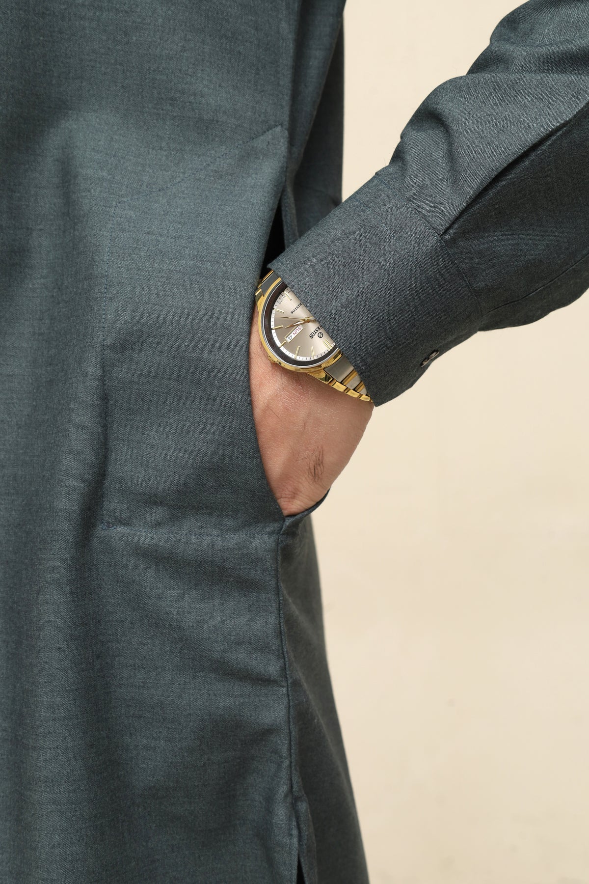 Traditional placket end with subtle pocket slit