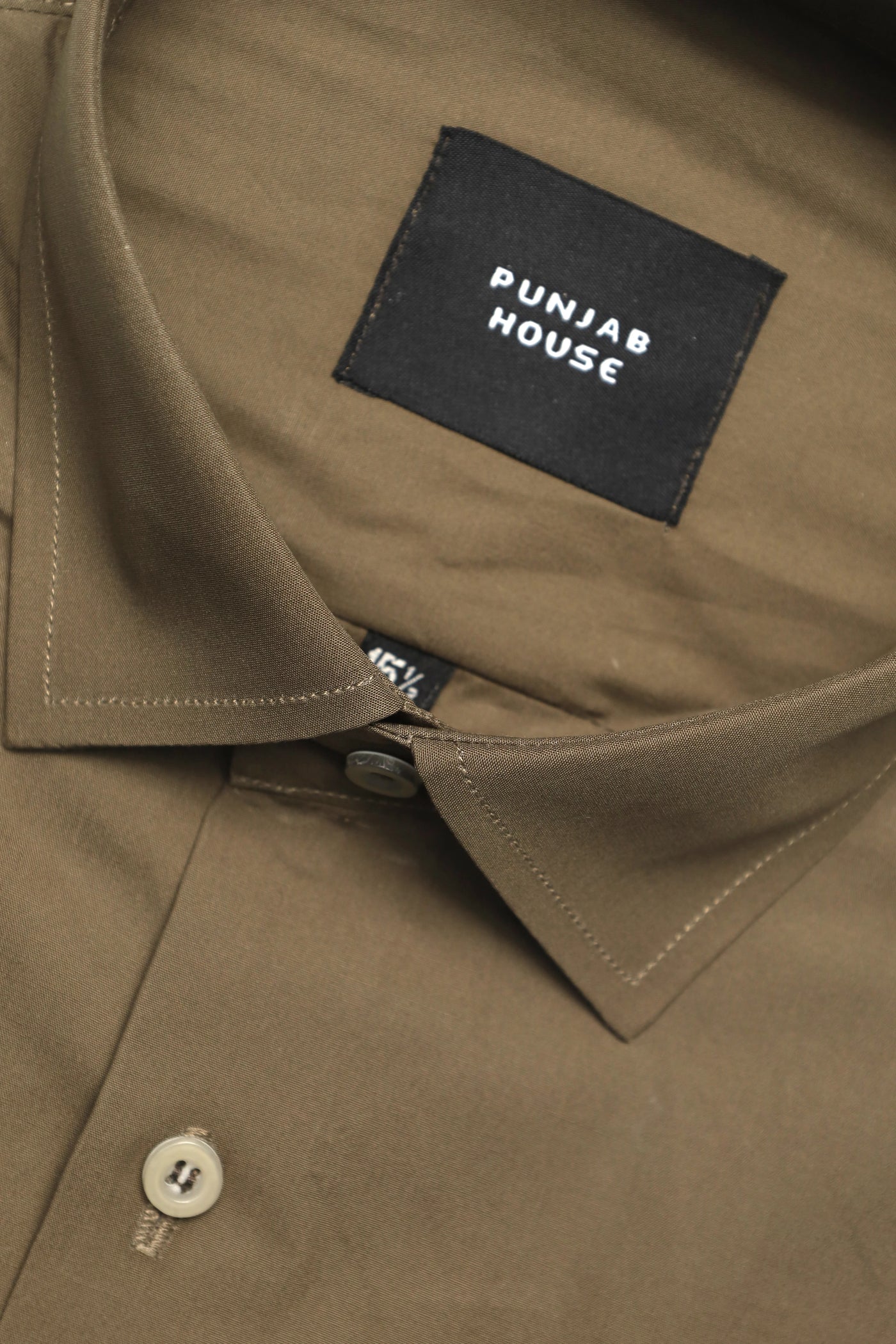 Make a bold impression with this Men's Kaki Formal Plain Shirt from Punjab House. Combining vibrant color with classic tailoring,...
