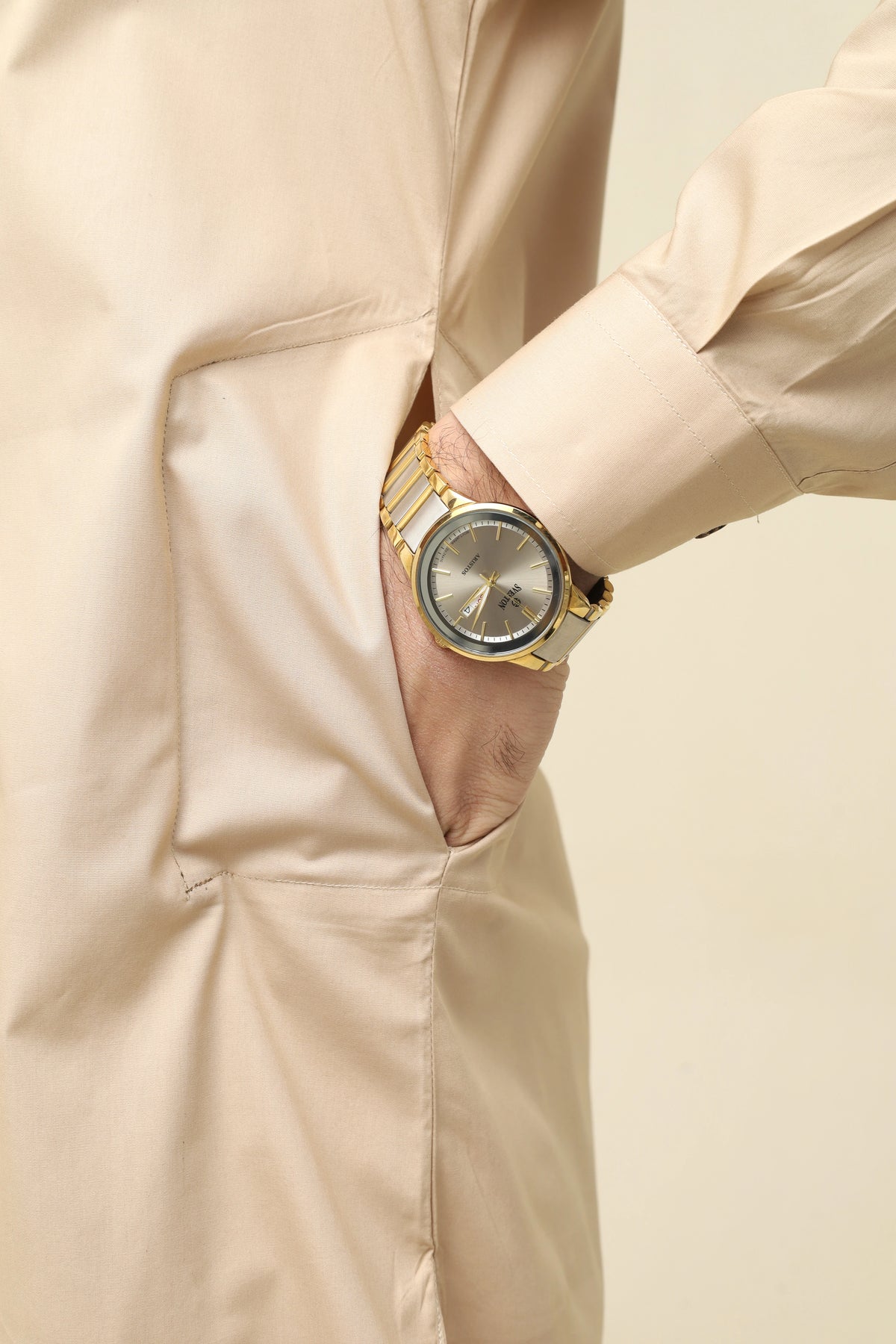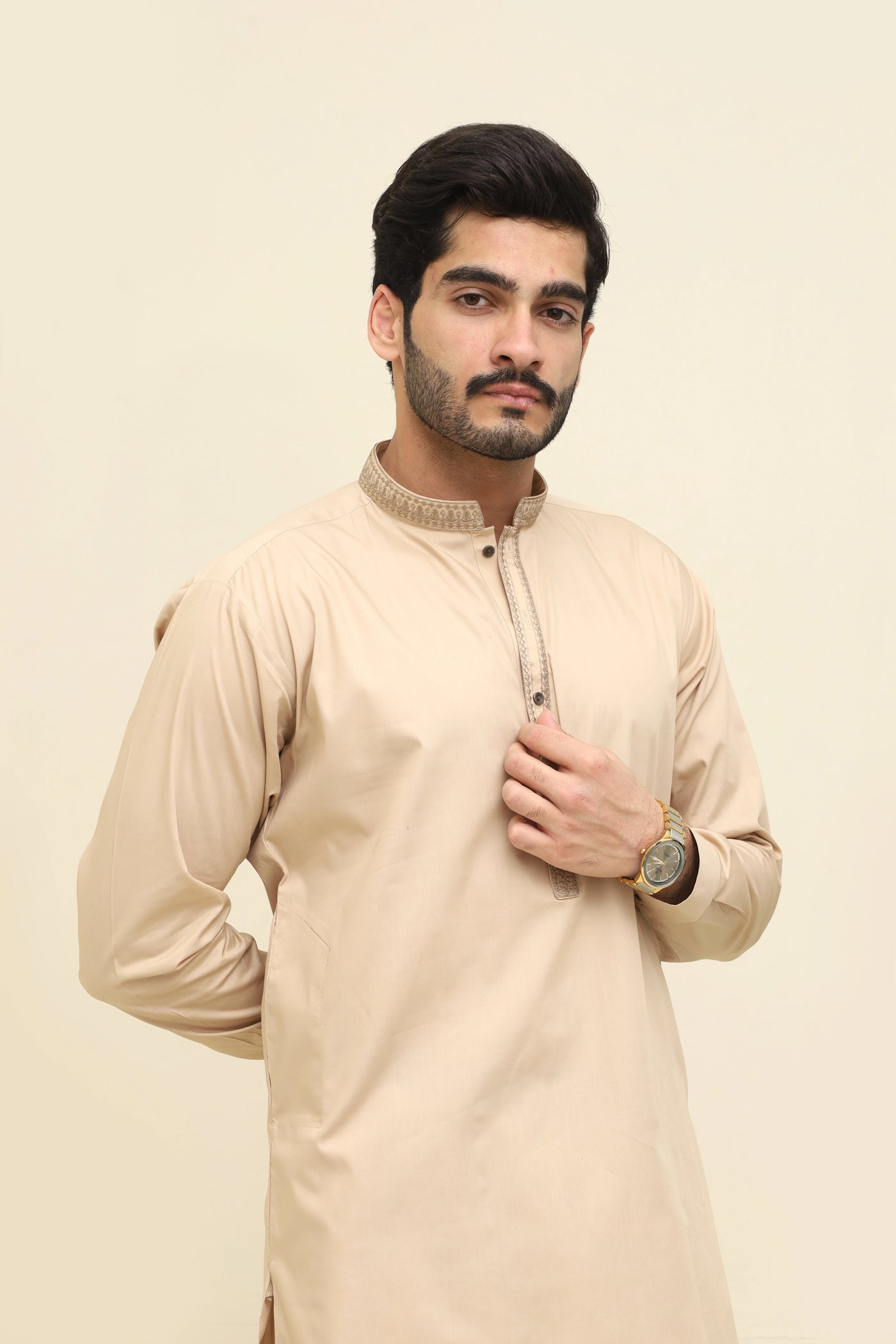 Highlight understated sophistication with this refined Light Beige Kurta ensemble. Perfectly balanced for semi-formal or festive occasions, the outfit combines classic traditional tailoring with subtle, elegant detailing.