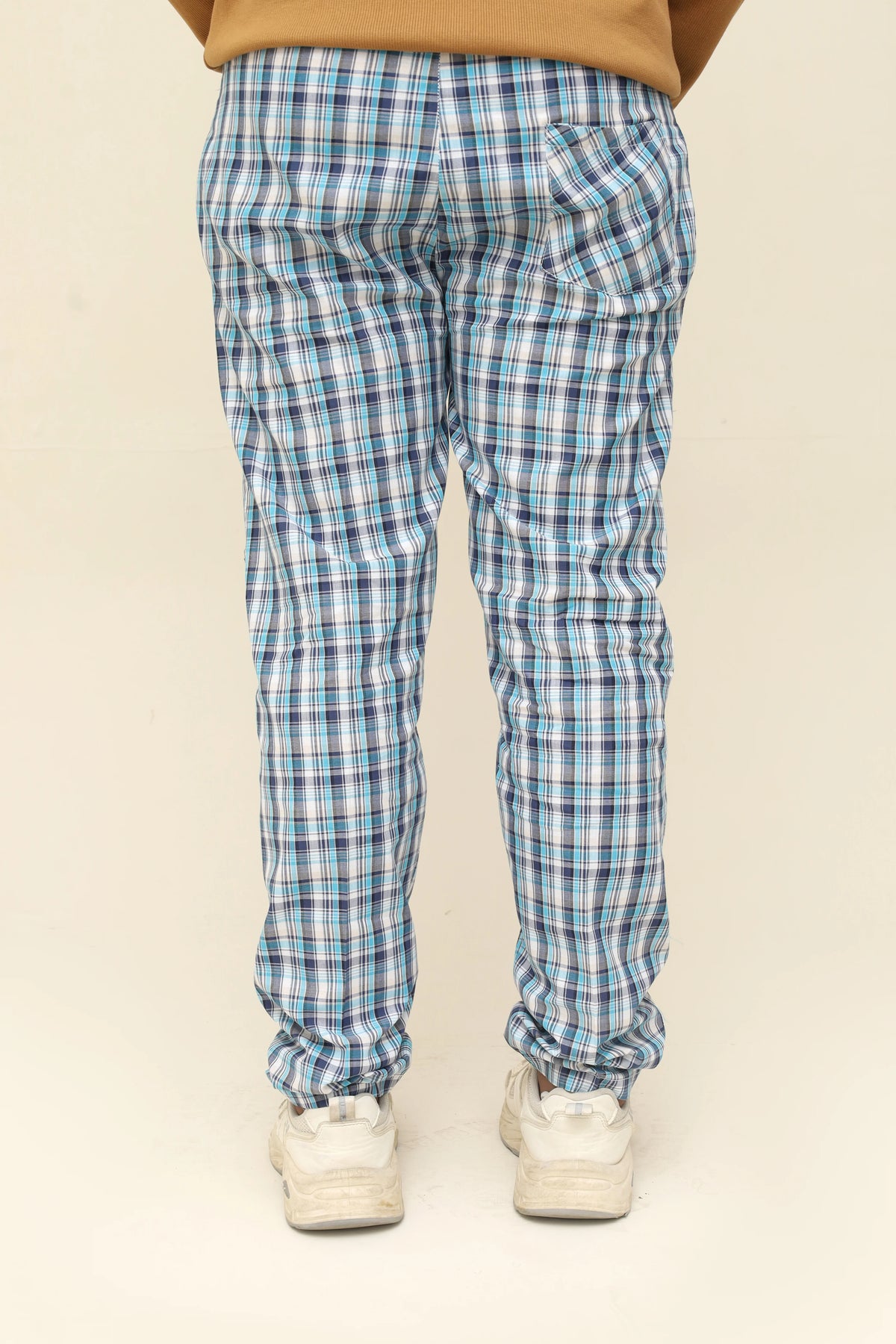Men's Classic Tartan Plaid Blue Night Trousers - S / Sky Blue