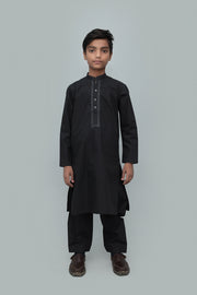 Kid's Formal Black Embroidered Cotton Shalwaar Kameez