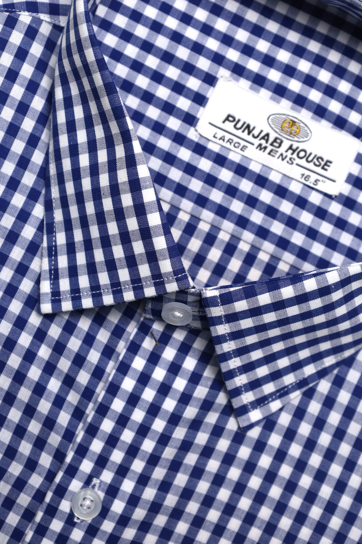 White Bold Stripe Dark Blue Check Formal Shirt - 14.5